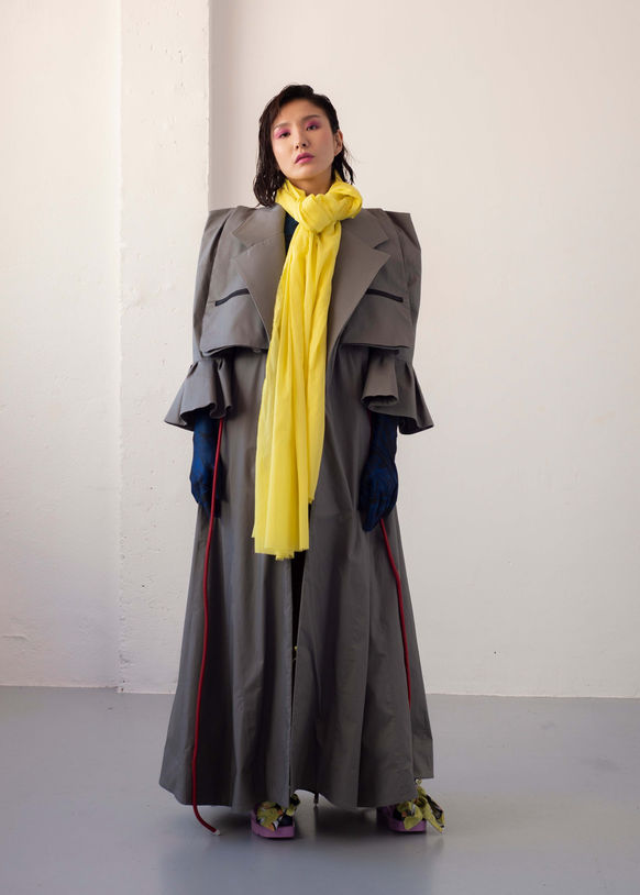 The above garments were designed and sewn by Conrad Andersen for his 2021 thesis collection. The narrative surrounding the collection centered around technological singularity, and how the internet has spurred on radical social changes in such a short period of time. To summarize the famed futurist Ray Kurzweil, technological growth isn’t a linear system (it grows exponentially) we can see up to 20,000 years worth of human progress in the next 100 years—but will society be able to adapt to such radical changes? I used a combination of flat pattern making and moulage to achieve such volumes in garments. All prints were designed by Conrad and produced through sublimation and hand garment dying.